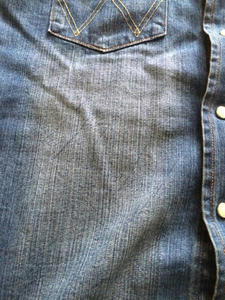 こうやって見ると、カウボーイシャツ風のデザインなんですが、補強されている部分が特に変色しているんですよ。