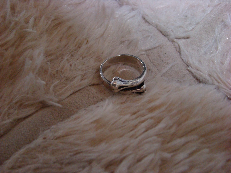 骨をネジって指輪にしている細いリングなんです。