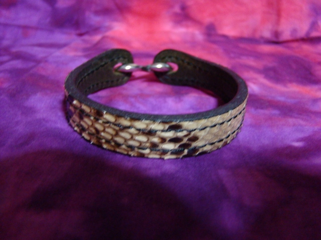 革は牛で、蛇革は手縫いで縫いとめているとか。