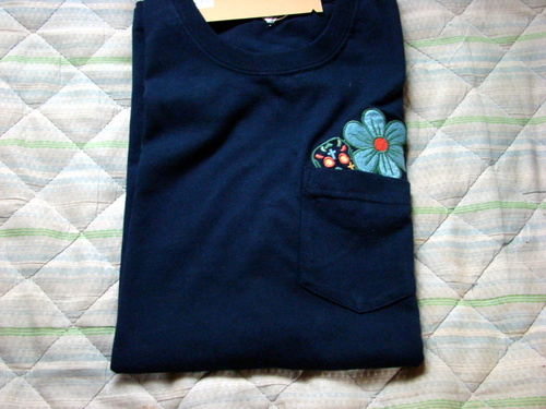 昨年ぐらいからでしょうか、Tシャツにポケットが付いているデザインが流行ってますね。