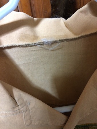タグが無くて、襟元にノリで貼られていたものが剥がれてしまったような跡があるんで、ワークシャツなんだろうか?と推測してるんですが。