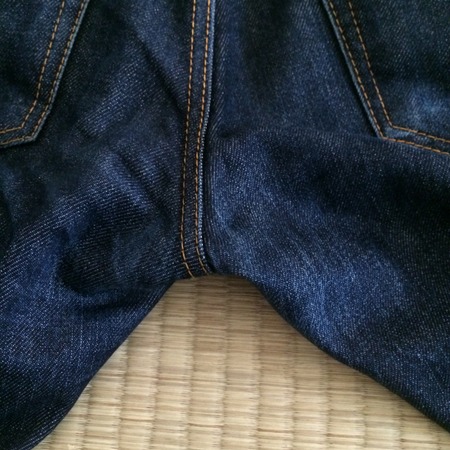そこからは、糊が落ちていい具合に自分の体型にフィットしてきて柔らかくなり履きやすくなったのですが、洗っていないですねぇ。