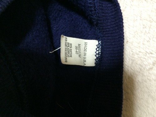 内タグが他についてない点や、日本語の書かれているタグが無い点、アメリカサイズのMだけども着丈が短いという所を考えると結構古いものかもしれませんね。