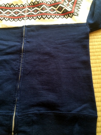 こうやって見ると、カウボーイシャツ風のデザインなんですが、補強されている部分が特に変色しているんですよ。